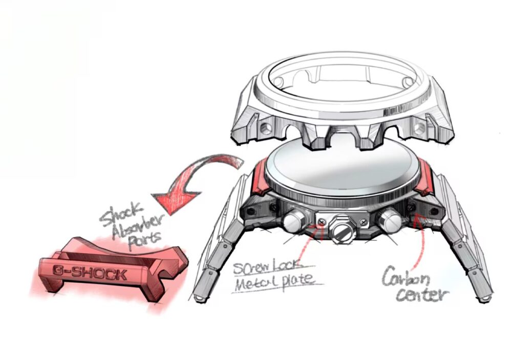 これってG-SHOCKなの?という声もありそうですが、CASIO公式では、デザインの端々に初代G-SHOCKからのインスパイアがあると説明されています。