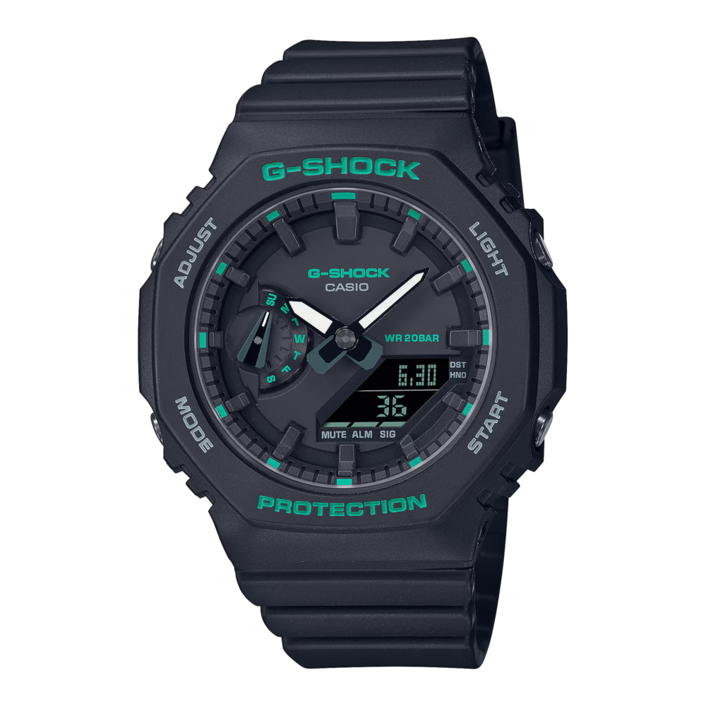 2つ目は、GA-2100-1A1 レディースに特に人気の2100シリーズオールブラックです。